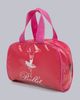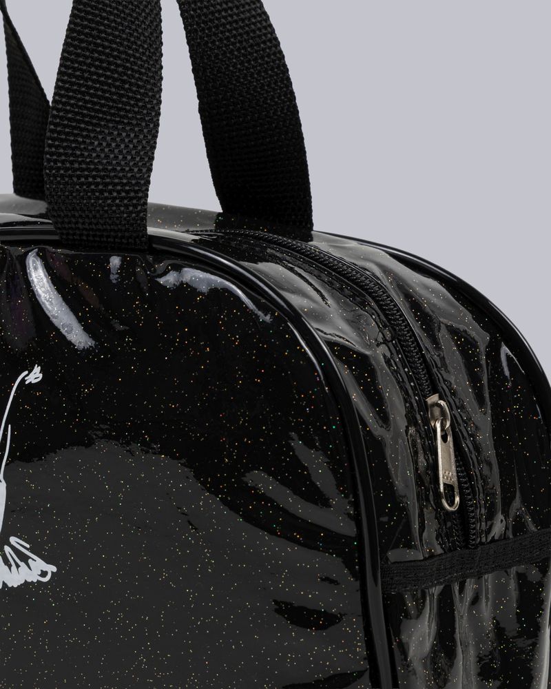 Bolsa confeccionada em material com acabamento em verniz e detalhes de glitter, que adicionam brilho e um toque fashion ao look. Compacta e prática, é ideal para levar seus itens essenciais com charme, seja em treinos, apresentações ou passeios. Um acessório que combina funcionalidade e glamour.