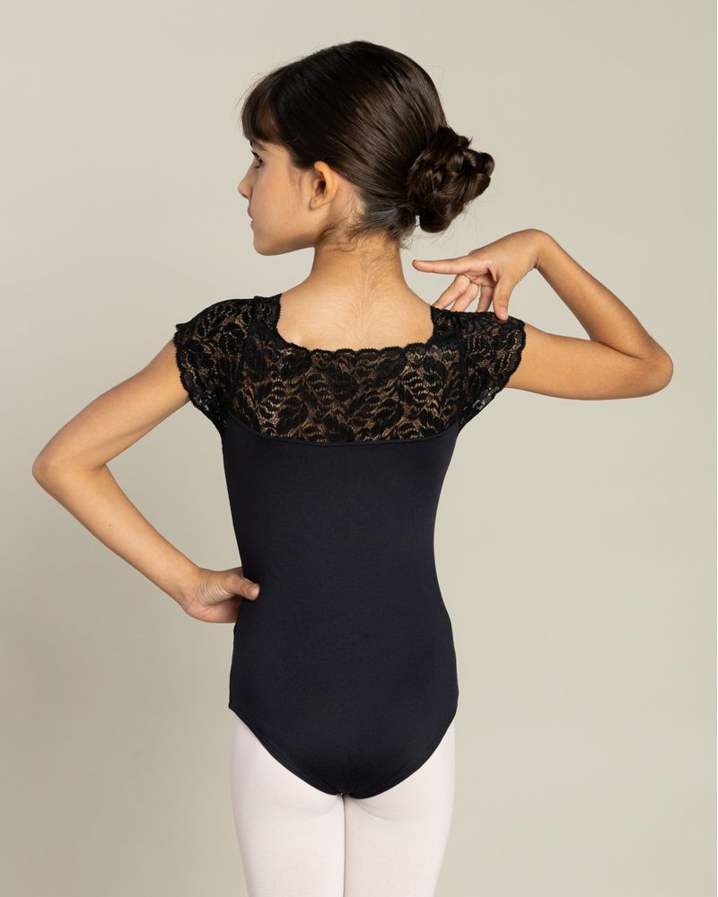 Collant infantil confeccionado em amni, com delicados detalhes em renda que trazem charme e sofisticação ao look das pequenas bailarinas. O tecido amni é confortável, elástico, com toque macio e proteção UV, garantindo liberdade de movimento e bem-estar durante aulas, ensaios e apresentações.