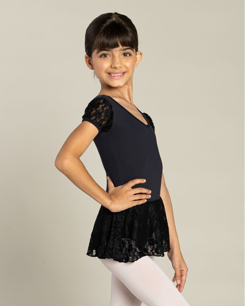Collant infantil confeccionado em amni, com saia delicada em renda que adiciona charme e elegância ao visual das pequenas bailarinas. O tecido amni oferece toque macio, elasticidade, proteção UV e excelente caimento, garantindo conforto e liberdade de movimento para aulas, ensaios e apresentações.