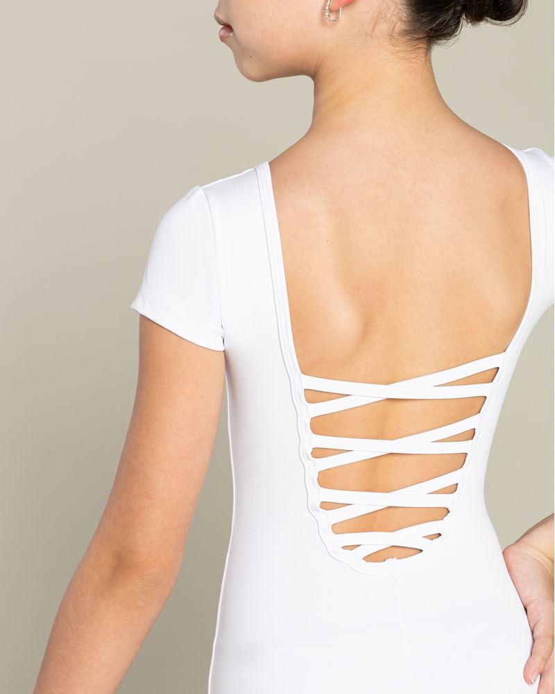 Collant meia manga confeccionado em amni, com detalhe de tiras cruzadas em “X” nas costas, que proporciona um visual moderno e elegante. O tecido amni oferece conforto, elasticidade, toque macio e proteção UV, garantindo liberdade de movimento e excelente caimento. Perfeito para aulas, ensaios e apresentações, une funcionalidade e estilo em uma só peça.